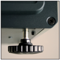 The four adjustable feet under the chassis enable the projector to be lowered onto a flat surface without the risk of hands being trapped between the chassis and the surface. These feet can be used to adjust the height of the projector such that the projected image is level.
