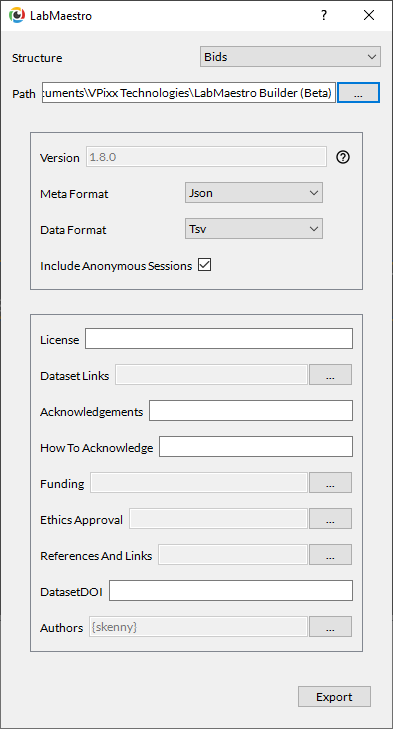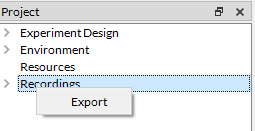 Navigate to the Project Panel, right-click on the Recordings header to find the Export, and open the Data Export dialogue box.