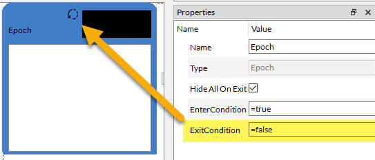 If the ExitCondition of Epochs always evaluates to false during runtime, it causes an infinite loop. Similar to a traditional programming language, the experiment cannot proceed further (you can refer to EnterCondition and ExitCondition for more details). However, if you hold down the Esc key, it will break out of the infinite loop and exit the previewed timeline or launched experiment. This will bring back the control to the LabMaestro editor.