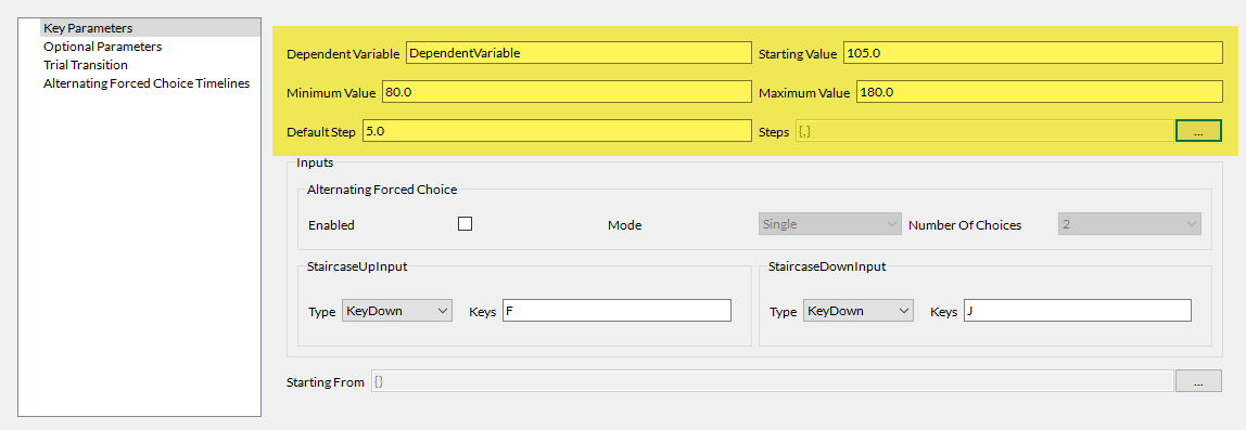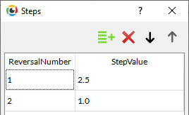 Steps: Allows you to define custom step sizes to use after a user-defined number of staircase reversals have been achieved.