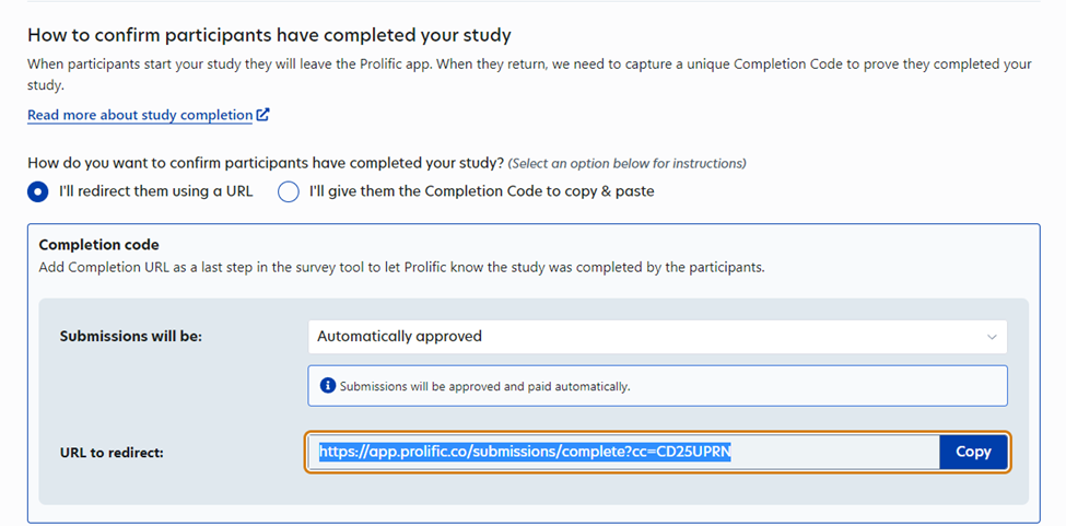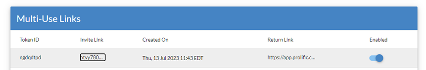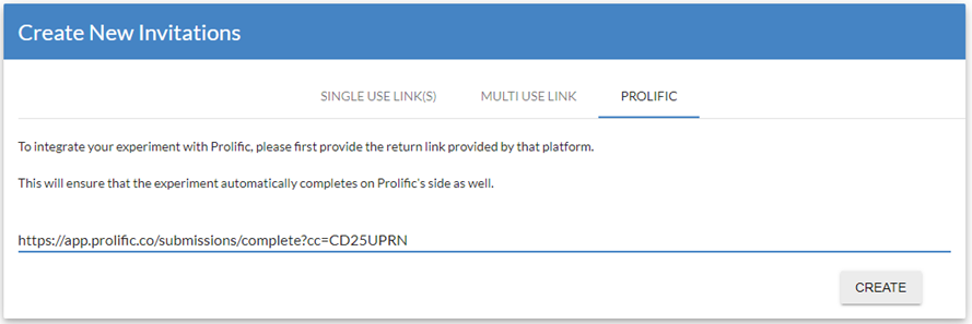 For researchers using Prolific to recruit participants, a multi-use invite link can be created for running your experiment, which will redirect the participant back to Prolific after they complete the experiment. See the steps below on how to set up these Prolific-integrated invite links.