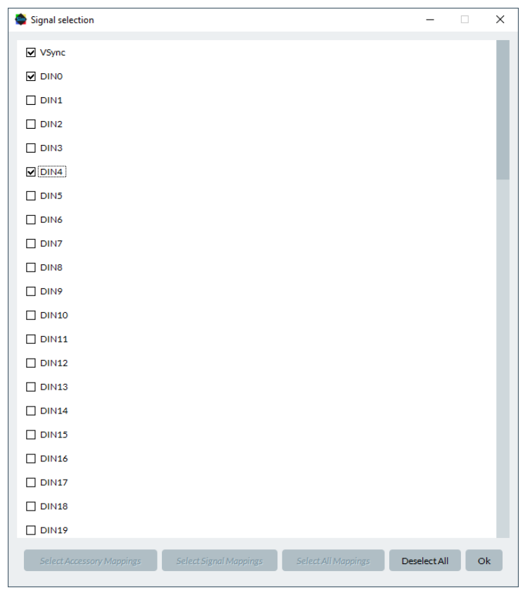 The Choose Signals button opens the Signal Selection window which allows you to select which signals to display. At the bottom, there are shortcut to select relevant signals.