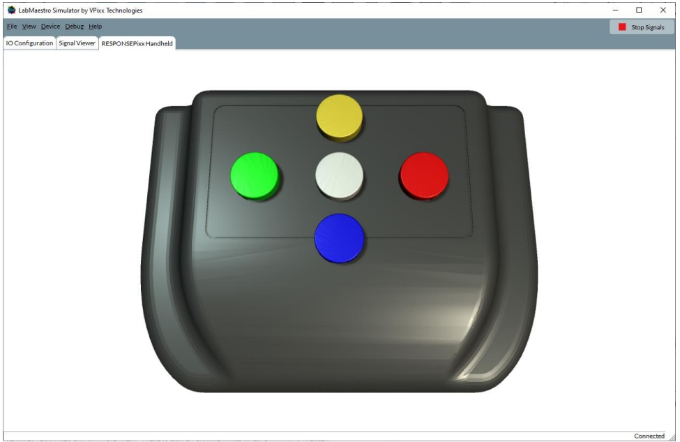Every button is dynamic and can be pressed. This allows you to run an experiment and simulate responses. The accessory viewer generates an audible noise when a button is pressed.