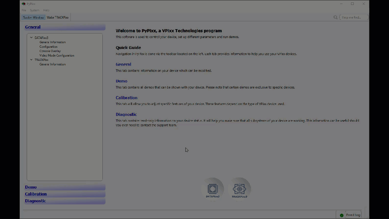 This project assumes your TRACKPixx3 is connected to your computer and positioned below your display. For tips on initial device setup, see the TRACKPixx3 user guide.